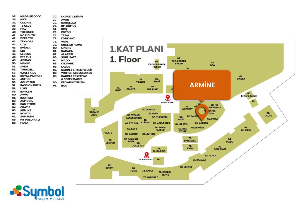 Arimne mağazamız Symbol Yaşam Merkezi’ nin 1. katında sizleri bekliyor.